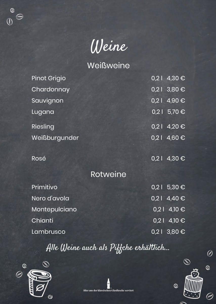 The menu at Café Amore Mio features a variety of options suitable for breakfast, coffee breaks, and light meals throughout the day. Guests can expect a selection of coffee and other beverages, complemented by light food items and desserts.